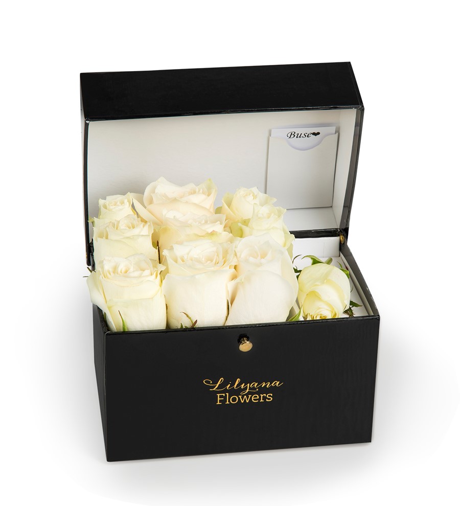 Dikdörtgen Siyah Kutuda Beyaz Gül